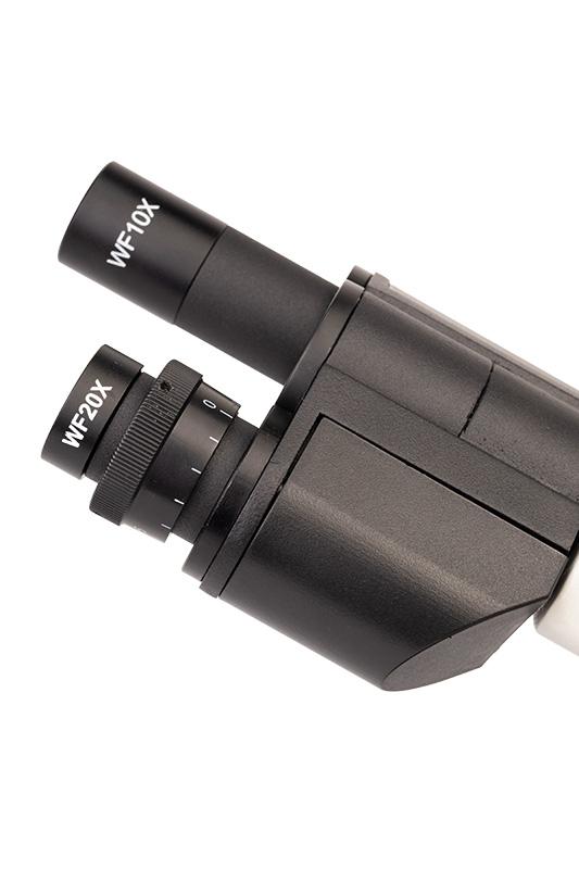 - Tubo binocular tipo siedentopf de percurso óptico de 160 mm,