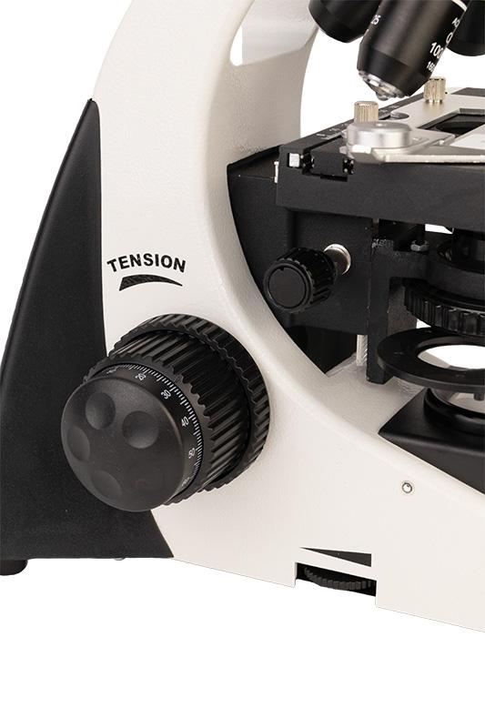 - Condensador tipo Abbe de 1.25 NA com íris diafragma, possui porta filtro e exclusivo sistema de centralização feita por 2 botões, movimento vertical realizado por pinhão e cremalheira;