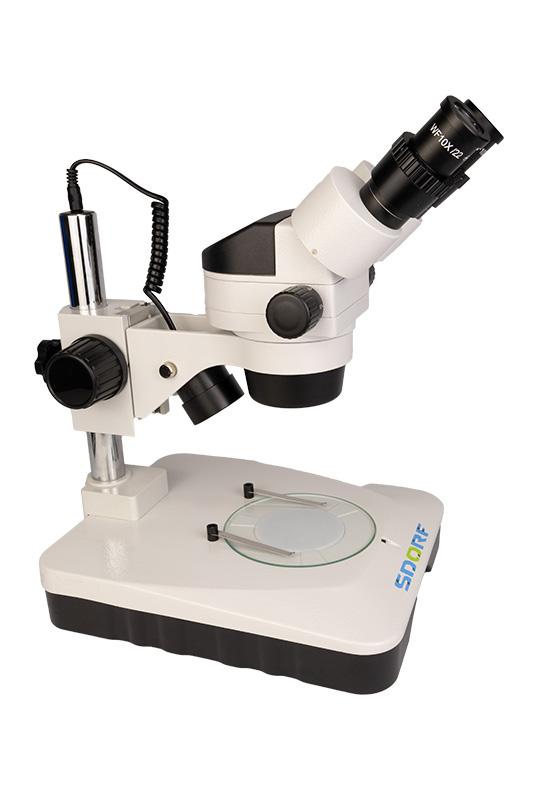 Microscópio estereoscópio binocular com sistema de aumento tipo zoom, ideal para estudos de amostras opacas, semi-opacas, translucidas ou semi-translucidas, possuindo sistema duplo de Iluminação Episcópico e Diascópico (Refletida/Transmitida), O Modelo SDME-300 é indicado e essencial para controle de qualidade, análise morfológica de diversas estruturas sendo parte ou o todo. Seu uso é amplamente utilizado em amostras biológicas, não biológicas e eletrônica, com grande importância em áreas tais como: Melhoramento Genético (Transferência de Embrião e Avaliação de Óvulos), Entomologia, Mineralogia, Metalurgia, Controle de Qualidade de Materiais, Ciência da Madeira e em muitas outras áreas.