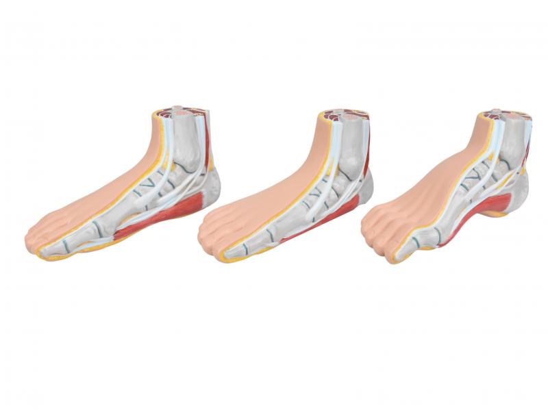 Modelo anatômico de pés com diferenças anatômicas, confeccionados em PVC especial, com pintura feito a mão, estes três modelos anatômicos são muito ricos de detalhes;