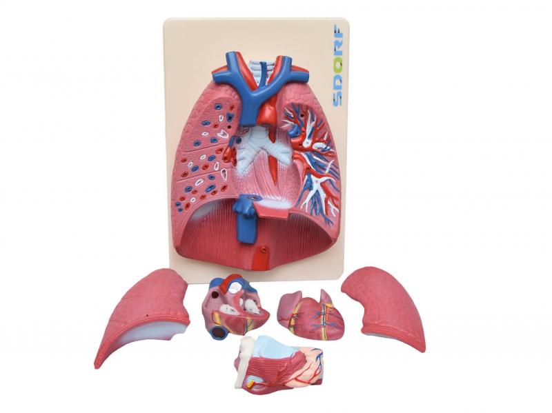 Modelo anatômico do sistema respiratório em 7 partes, confeccionado em PVC especial e com pintura feita a mão e cores realísticas;