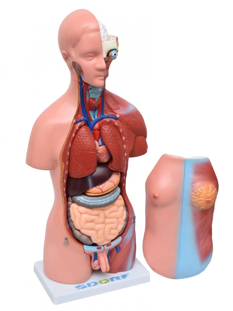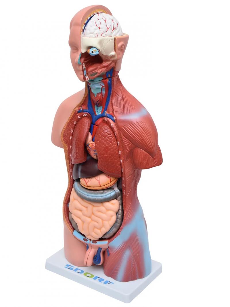 Modelo anatômico de Torso bissexual dividido em 23 Partes de 45 cm de altura, confeccionado em PVC e resina plástica emborrachada, é uma excelente ferramenta para entender o corpo humano de forma geral;