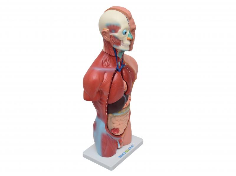 Modelo anatômico de Torso humano masculino de 42 cm de altura e com 13 partes, confeccionado em PVC e resina plástica emborrachada, é uma excelente ferramenta para entender o corpo humano de forma geral;