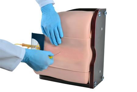 Simulador para treino de punção lombar em adulto, Confeccionado em PVC, resina plástica emborrachada siliconada e material gelatinoso, O modelo SD-4046 representa a coluna lombar de um adulto e evidencia estruturas tais como: Vértebras L1, L2(expostas), L3, L4, L5, Sacro, Cóccix e Processo Espinhoso; Possibilita o treinamento de: Punção Lombar, Anestesia Peridural e Caudal; O exercício pode ser realizado na posição sentada ou lateral.