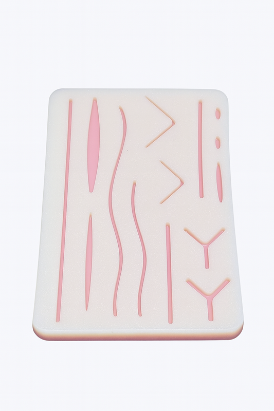 Simulador de pele para treino de sutura; Confeccionado em resina plástica siliconada, O modelo SD-4023/B é uma opção mais acessível para treino de suturas; Apresenta as seguintes camadas 2,5 mm (cutânea); 2,5mm (subcutânea); 5mm (muscular); O modelo possibilita suturas em diversas posições e direções e por inúmeras vezes; A pele é de grande elasticidade e resistência, proporcionando o uso prolongado.